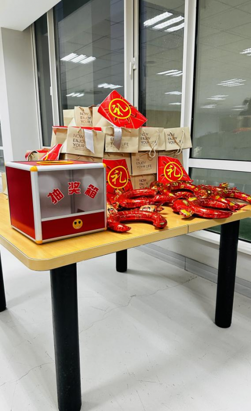 5日下午,各部门同仁集体动手布置年会活动场地,年会现场同事们其乐融融,欢声笑语。公司为年会活动准备了丰富的奖品以及美味的食物,让大家在品尝美食的同时开心中大奖,在一团喜气中迎接新一年的到来。